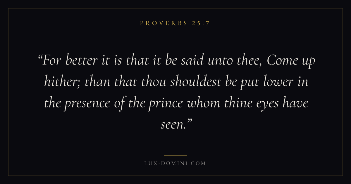 For better it is that it be said unto thee, Come up hither; than that thou shouldest be put lower in the presence of the prince whom thine eyes have seen.