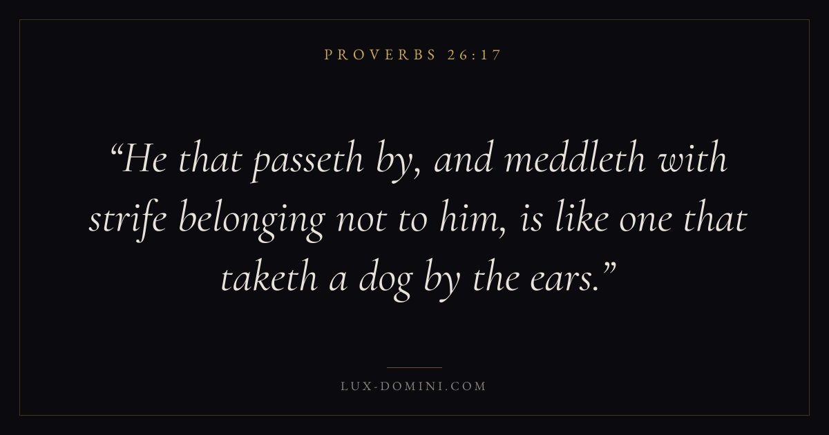 He that passeth by, and meddleth with strife belonging not to him, is like one that taketh a dog by the ears.
