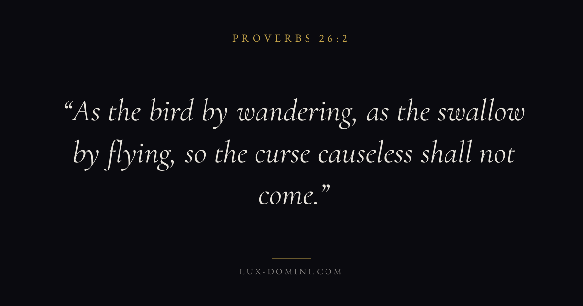 As the bird by wandering, as the swallow by flying, so the curse causeless shall not come.