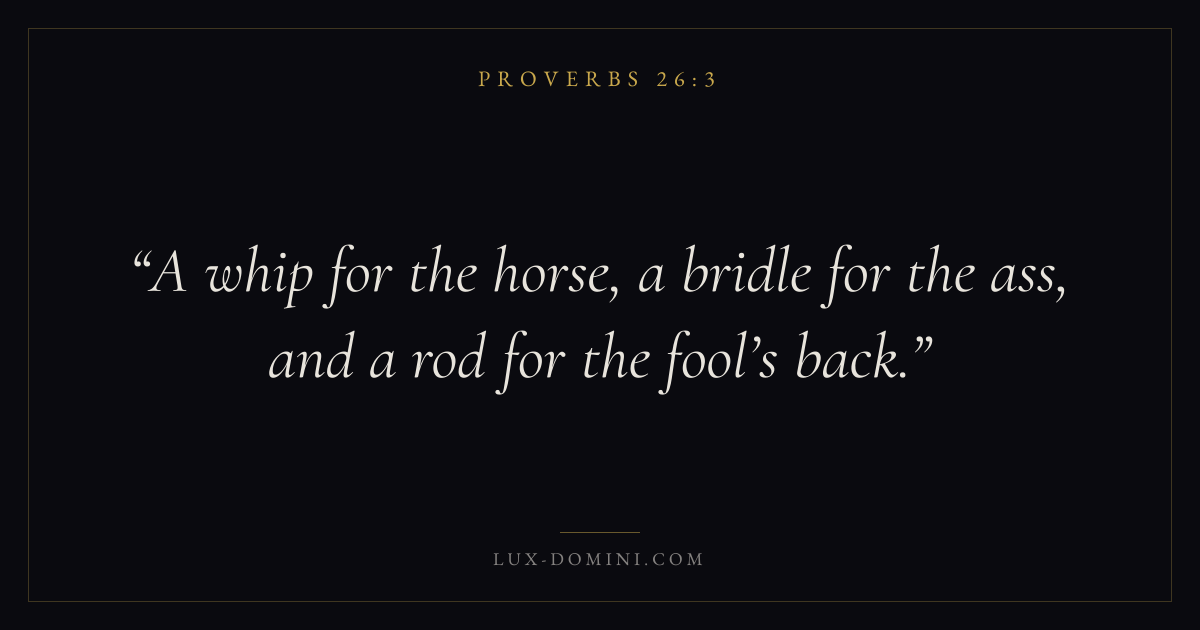 A whip for the horse, a bridle for the ass, and a rod for the fool’s back.