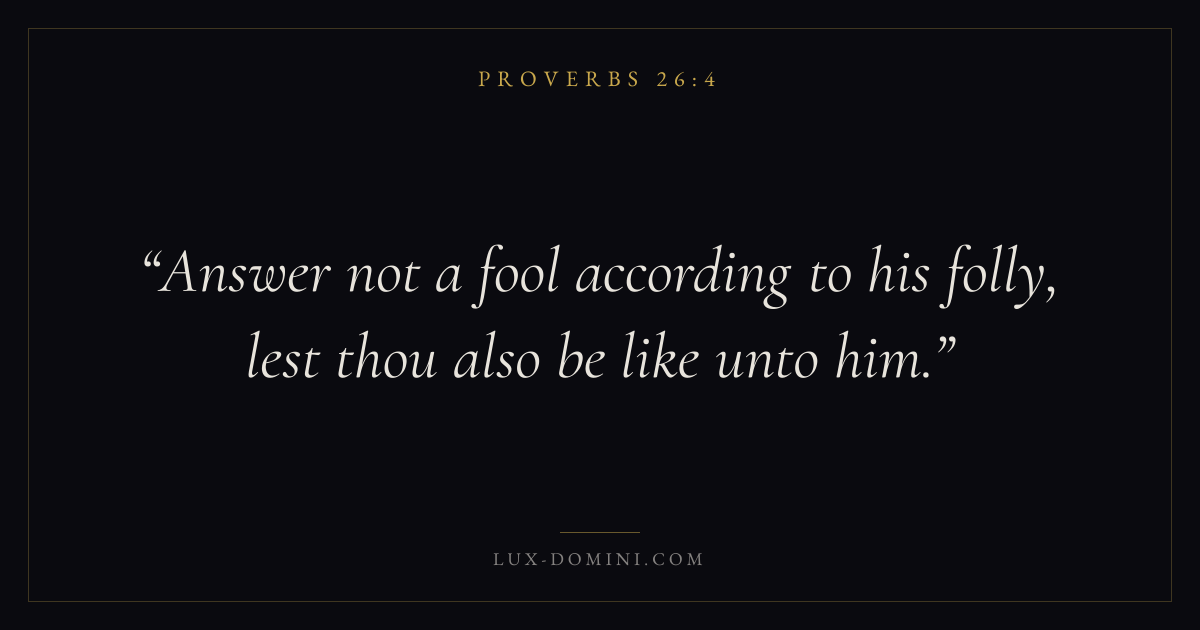 Answer not a fool according to his folly, lest thou also be like unto him.