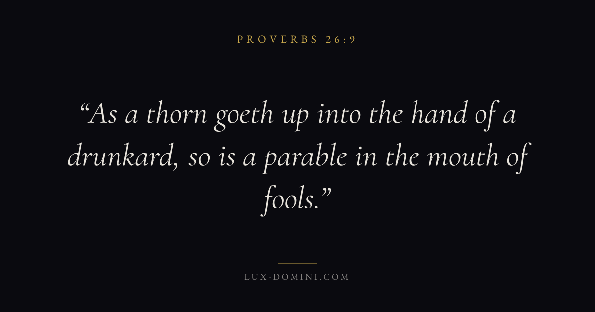 As a thorn goeth up into the hand of a drunkard, so is a parable in the mouth of fools.