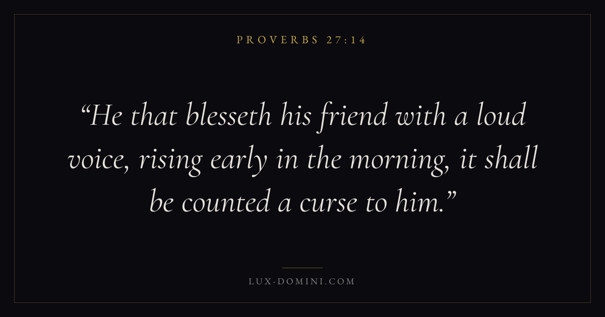He that blesseth his friend with a loud voice, rising early in the morning, it shall be counted a curse to him.