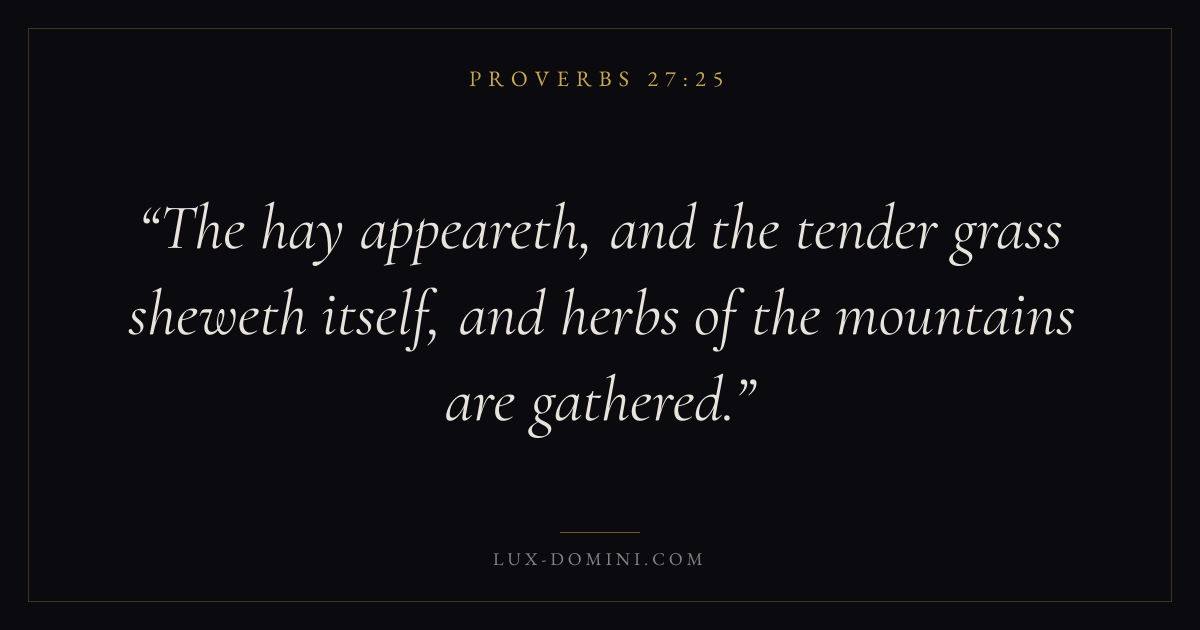 The hay appeareth, and the tender grass sheweth itself, and herbs of the mountains are gathered.