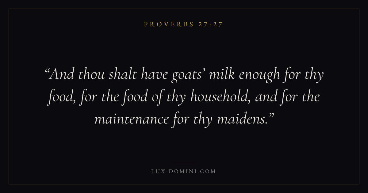And thou shalt have goats’ milk enough for thy food, for the food of thy household, and for the maintenance for thy maidens.