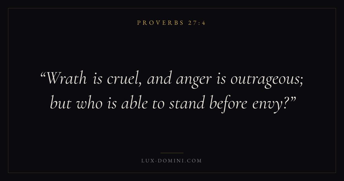 Wrath is cruel, and anger is outrageous; but who is able to stand before envy?