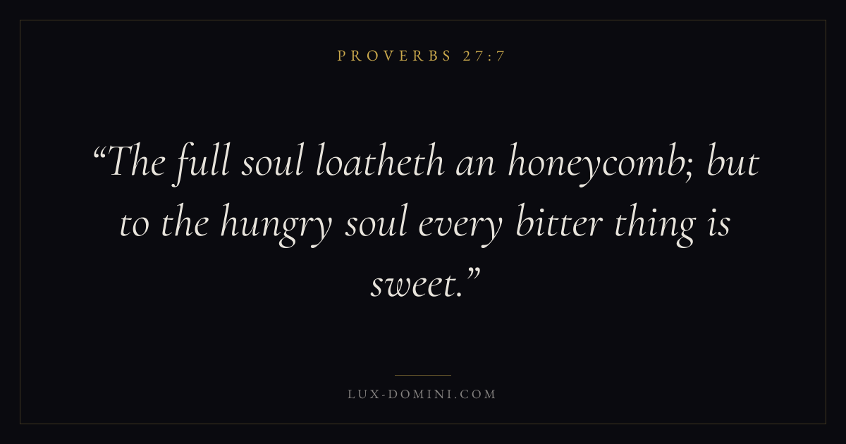 The full soul loatheth an honeycomb; but to the hungry soul every bitter thing is sweet.