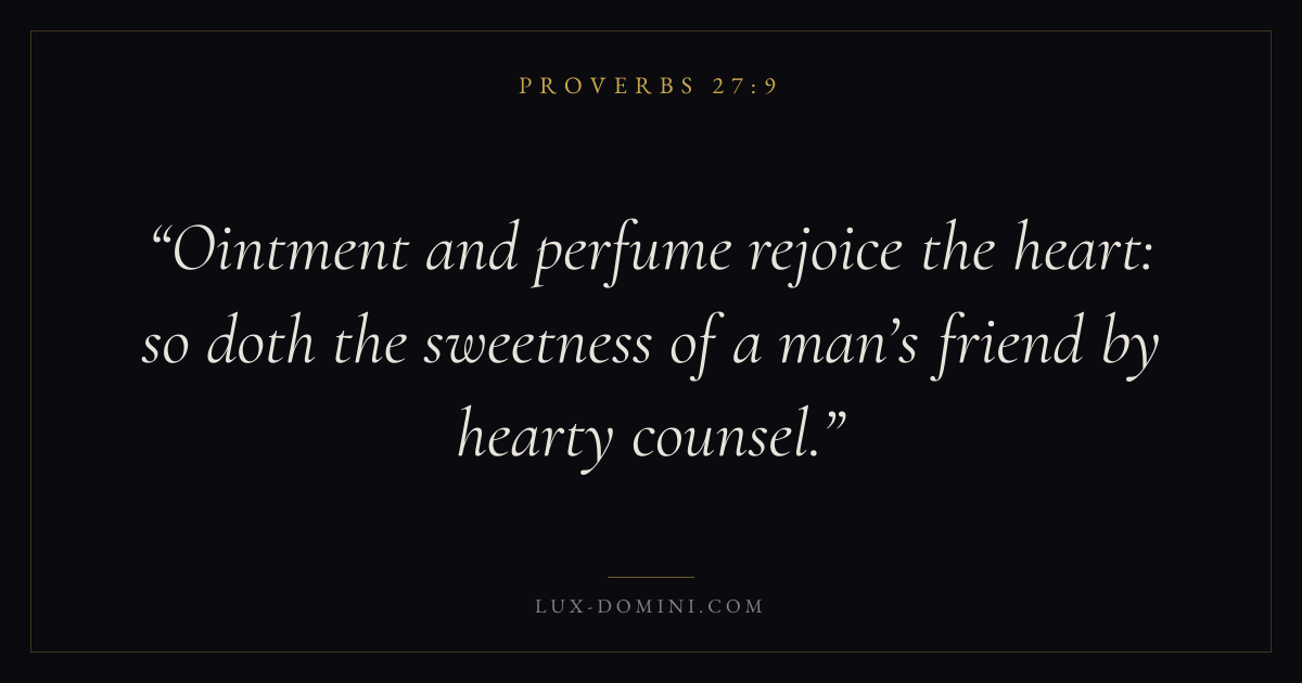 Ointment and perfume rejoice the heart: so doth the sweetness of a man’s friend by hearty counsel.