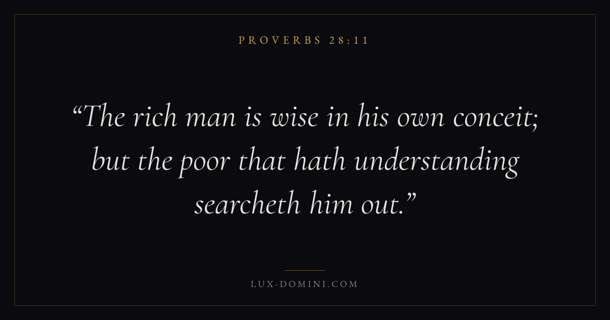 The rich man is wise in his own conceit; but the poor that hath understanding searcheth him out.