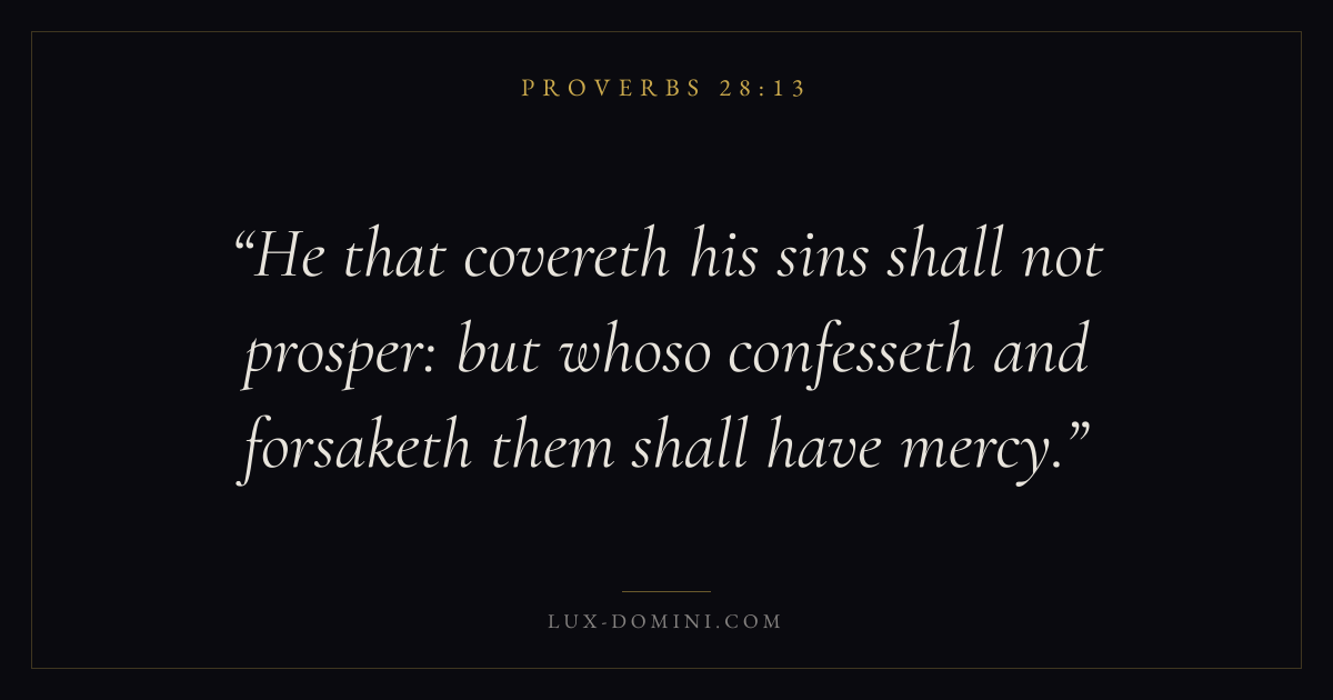 He that covereth his sins shall not prosper: but whoso confesseth and forsaketh them shall have mercy.