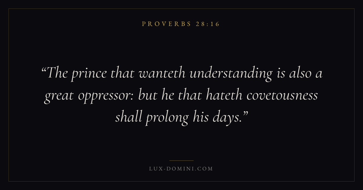 The prince that wanteth understanding is also a great oppressor: but he that hateth covetousness shall prolong his days.