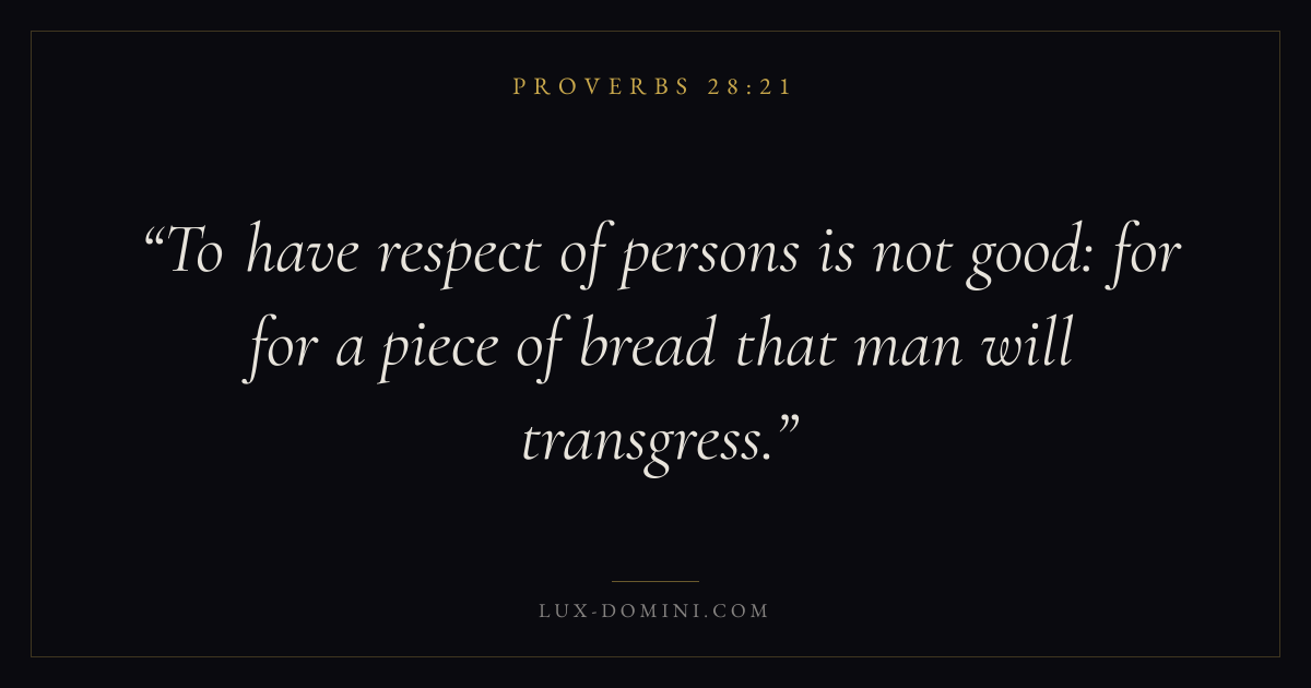 To have respect of persons is not good: for for a piece of bread that man will transgress.