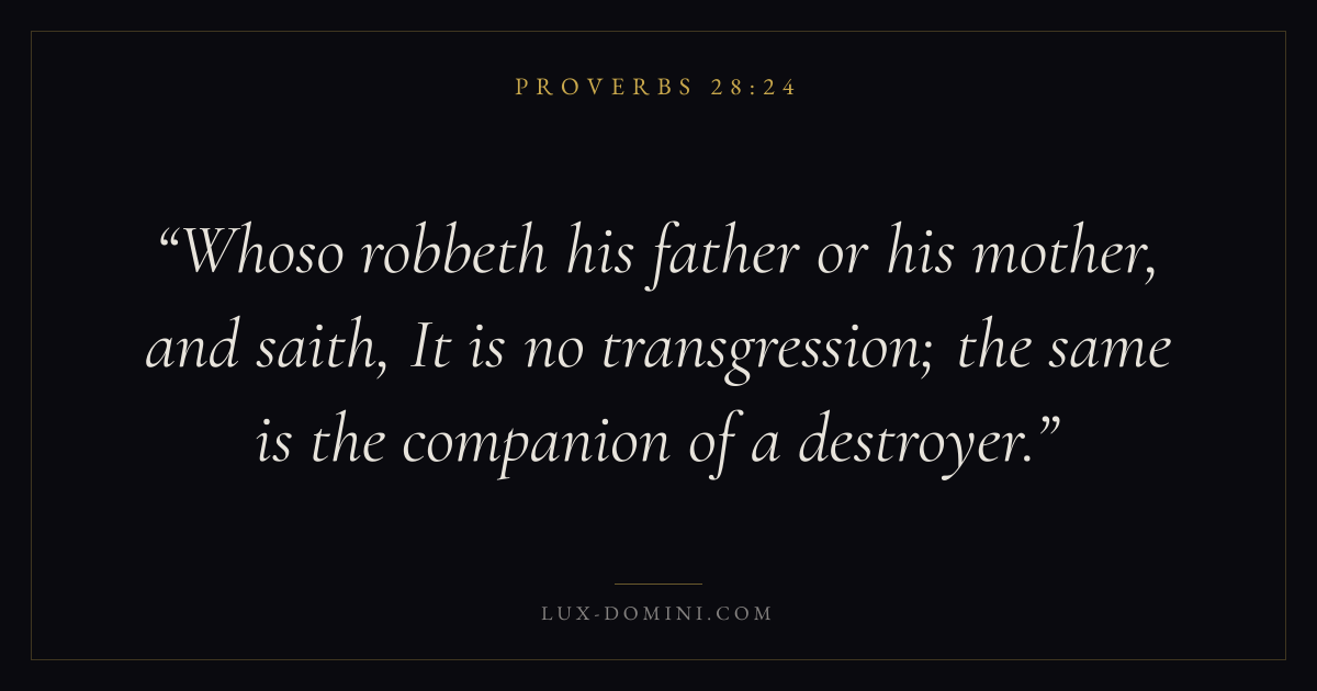 Whoso robbeth his father or his mother, and saith, It is no transgression; the same is the companion of a destroyer.