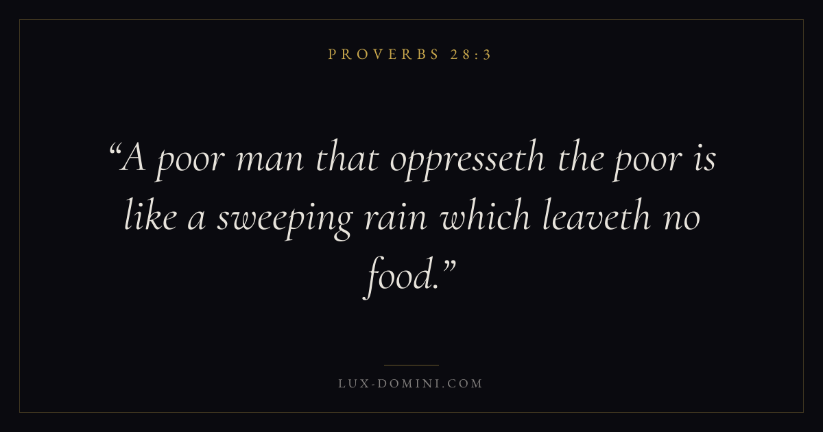 A poor man that oppresseth the poor is like a sweeping rain which leaveth no food.