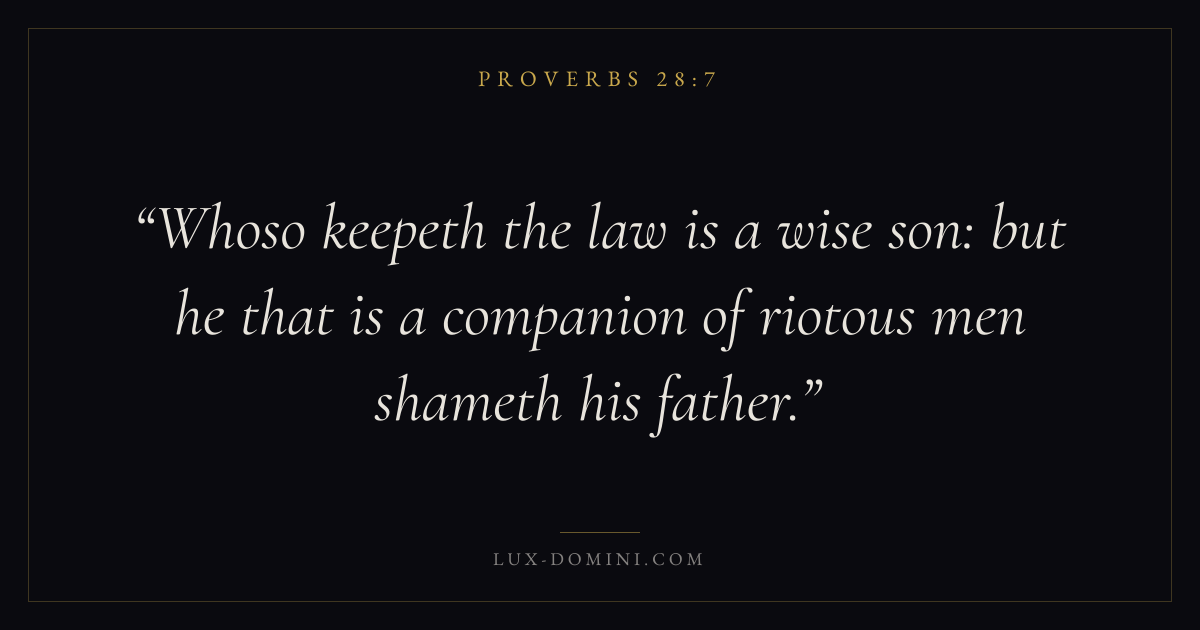 Whoso keepeth the law is a wise son: but he that is a companion of riotous men shameth his father.