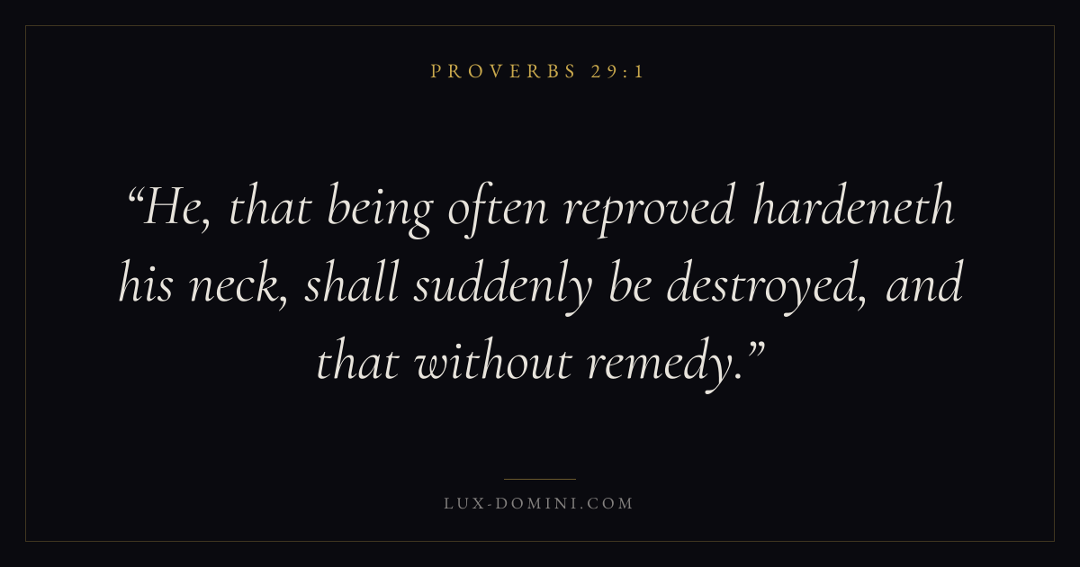 He, that being often reproved hardeneth his neck, shall suddenly be destroyed, and that without remedy.