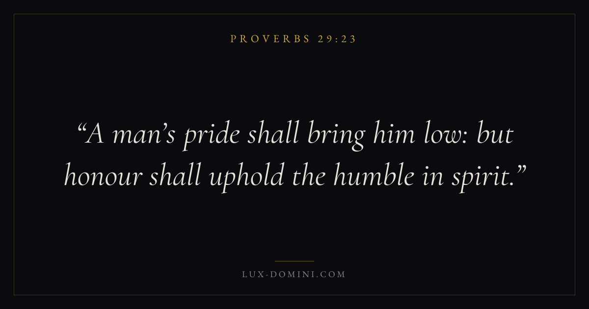 A man’s pride shall bring him low: but honour shall uphold the humble in spirit.