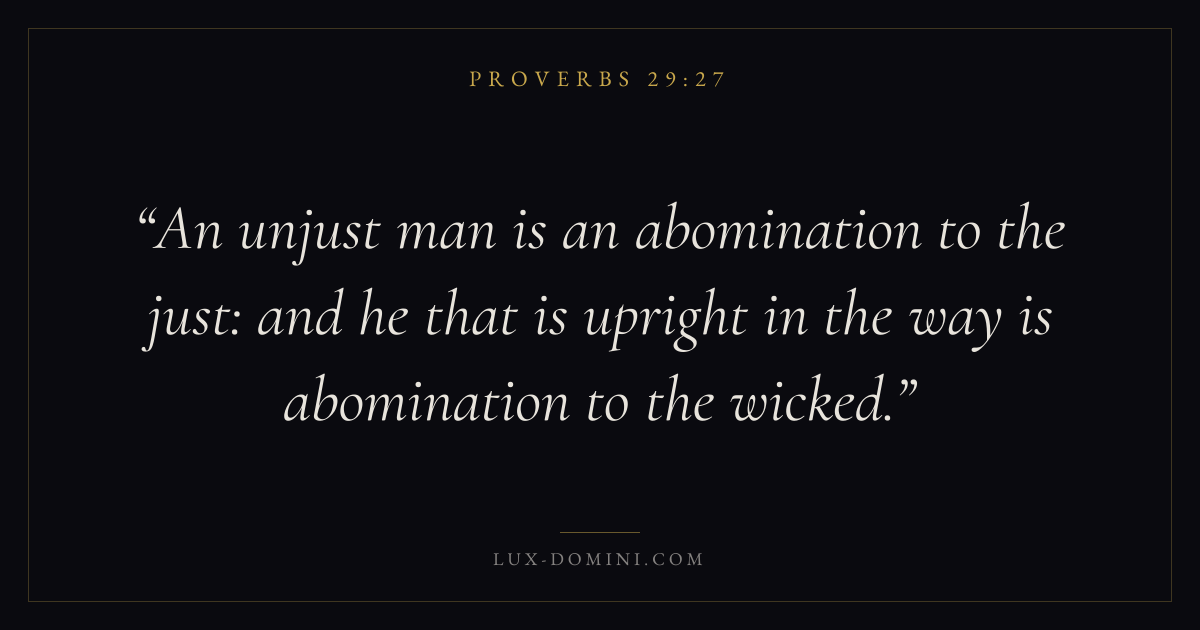 An unjust man is an abomination to the just: and he that is upright in the way is abomination to the wicked.