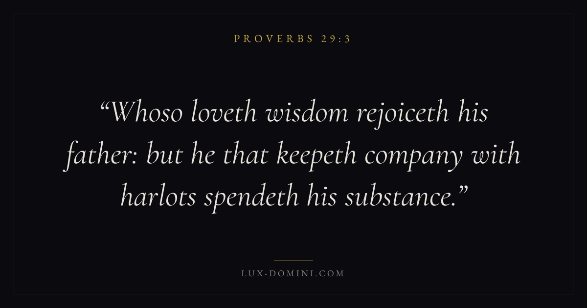 Whoso loveth wisdom rejoiceth his father: but he that keepeth company with harlots spendeth his substance.