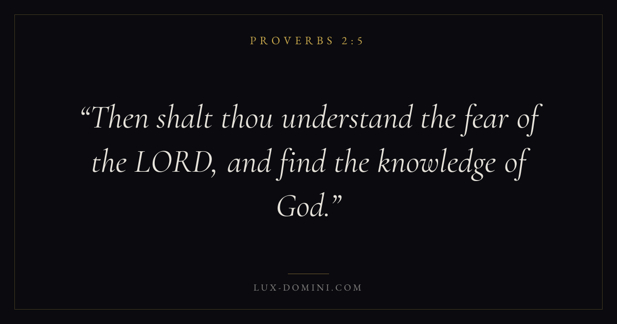 Books / Proverbs / Chapter 2 / Verse 5 ← Proverbs 2:4 Proverbs 2:5 Proverbs 2:6 → Then shalt thou understand the fear of the LORD, and find the knowledge of God. Download verse card Share on Twitter Share on Facebook Pin it ✦ Key themes Anxiety and fearPrayerWisdomJustice and mercyFear of the Lord Read with Proverbs 2:1Proverbs 2:2Philippians 4:6Isaiah 41:10 Related topics Bible verses about anxiety and fearBible verses about prayerBible verses about wisdomBible verses about justice and mercy ✦ Proverbs Chapter 2 verses V. 1 V. 2 V. 3 V. 4 V. 5 V. 6 V. 7 V. 8 V. 9 V. 10 V. 11 V. 12 V. 13 V. 14 V. 15 V. 16 V. 17 V. 18 V. 19 V. 20 V. 21 V. 22