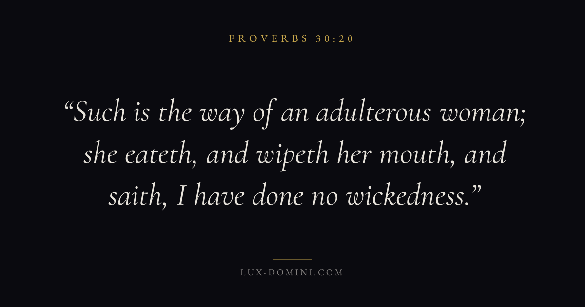 Such is the way of an adulterous woman; she eateth, and wipeth her mouth, and saith, I have done no wickedness.