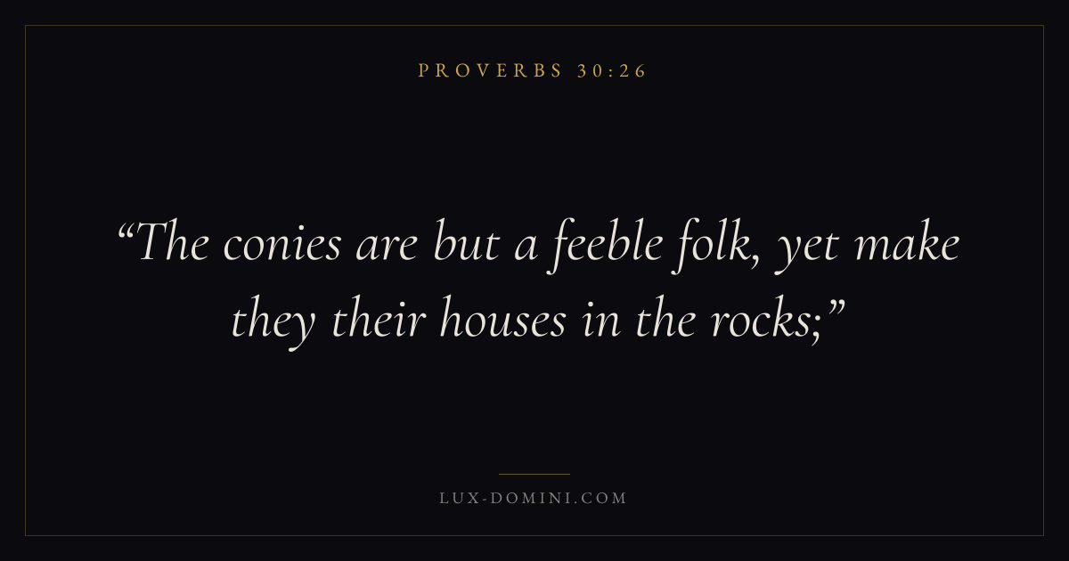The conies are but a feeble folk, yet make they their houses in the rocks;