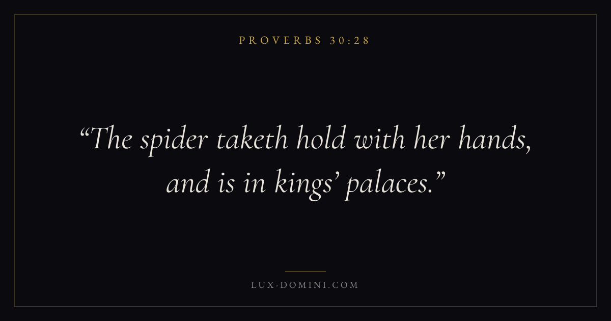 The spider taketh hold with her hands, and is in kings’ palaces.