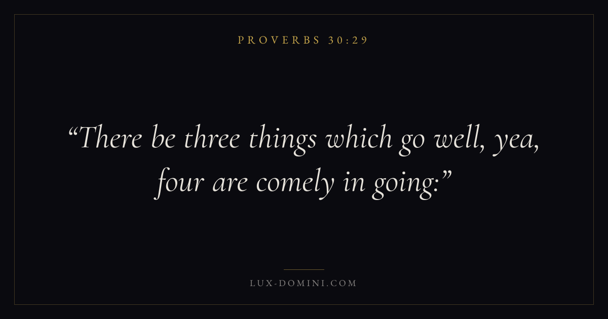 Keep this verse inside Proverbs 30:29-33 and alongside a few nearby related passages.