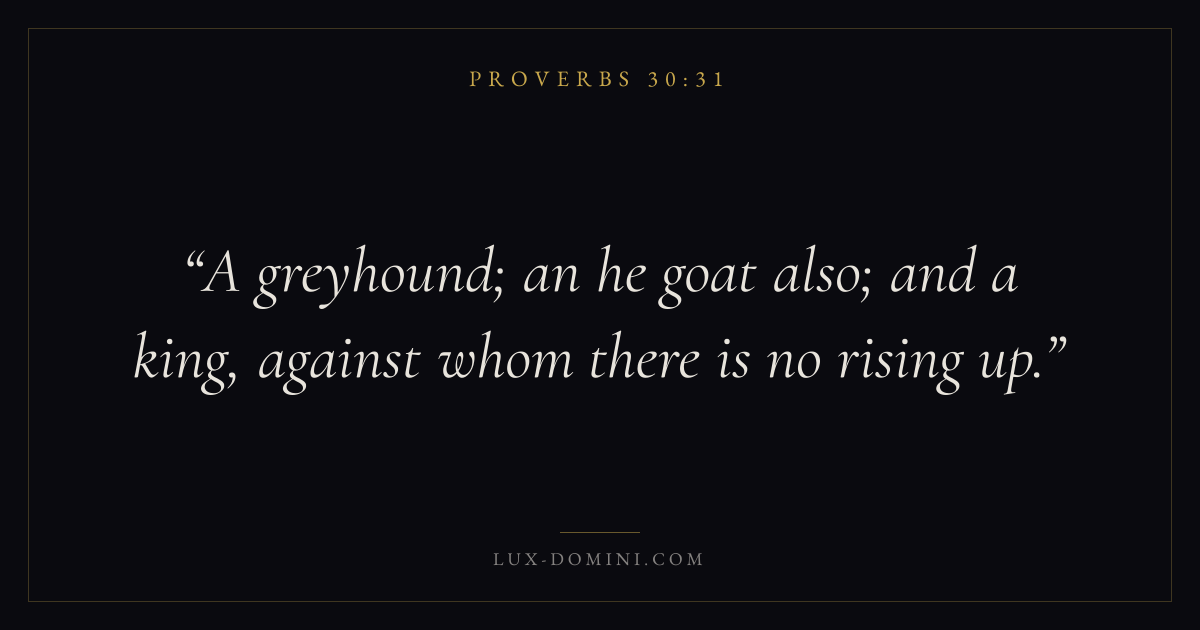 A greyhound; an he goat also; and a king, against whom there is no rising up.