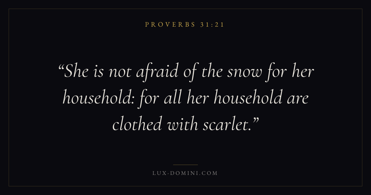 She is not afraid of the snow for her household: for all her household are clothed with scarlet.