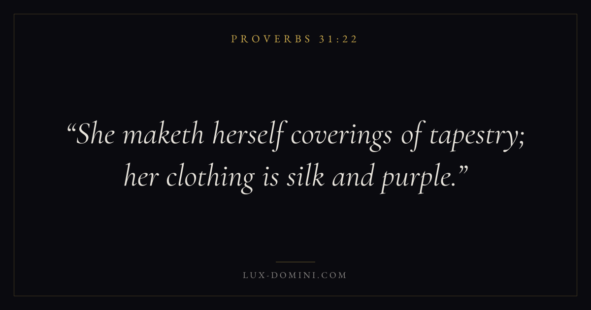 She maketh herself coverings of tapestry; her clothing is silk and purple.