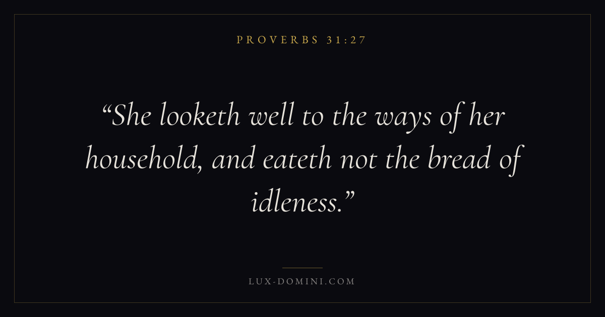 She looketh well to the ways of her household, and eateth not the bread of idleness.