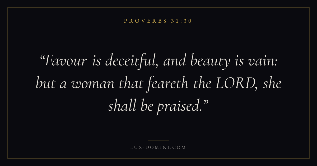 Favour is deceitful, and beauty is vain: but a woman that feareth the LORD, she shall be praised.