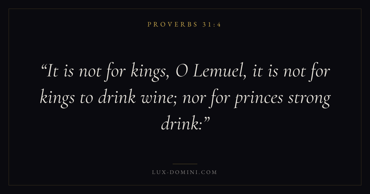 It is not for kings, O Lemuel, it is not for kings to drink wine; nor for princes strong drink: