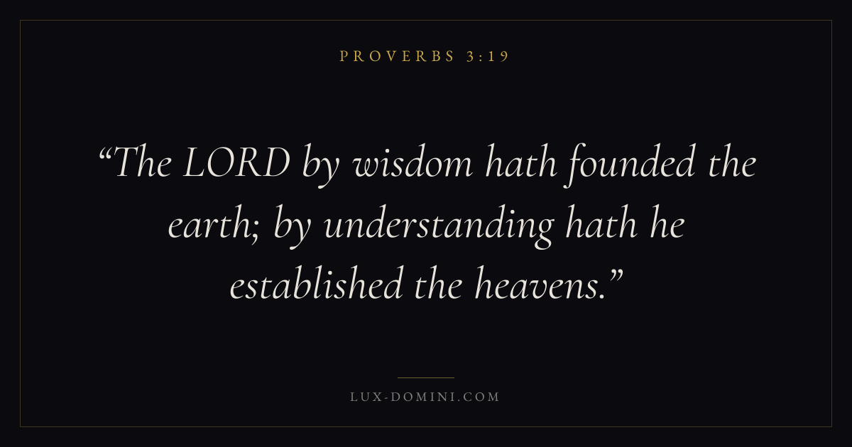 The LORD by wisdom hath founded the earth; by understanding hath he established the heavens.