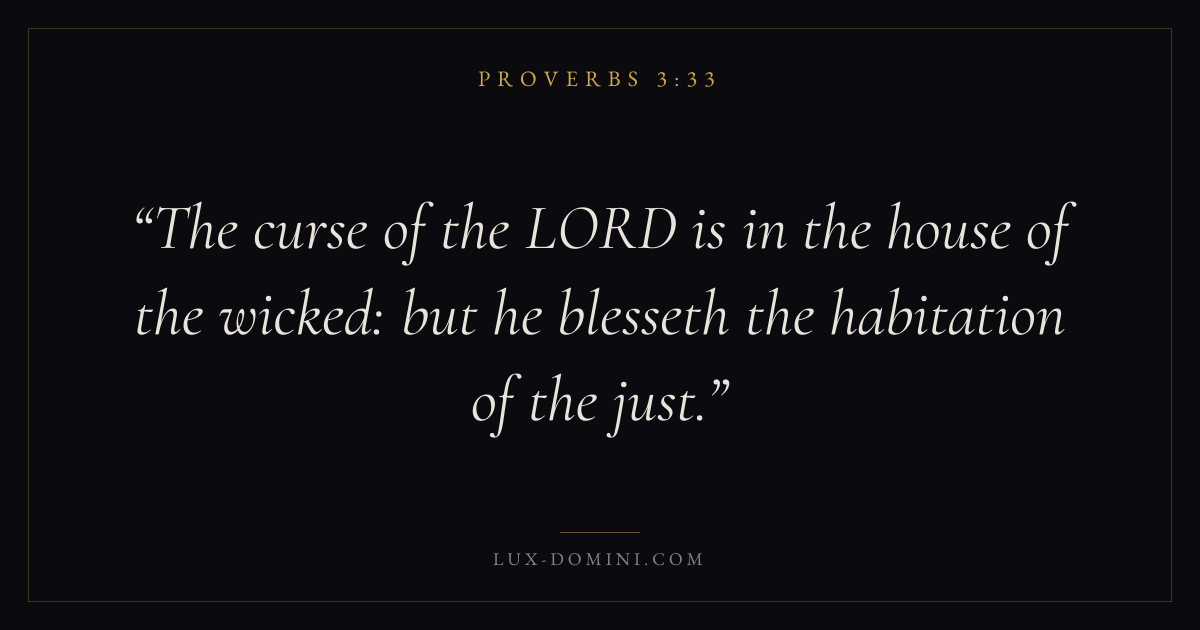 The curse of the LORD is in the house of the wicked: but he blesseth the habitation of the just.