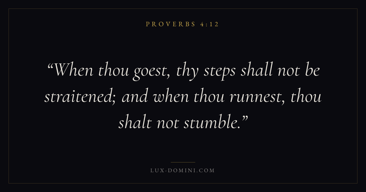 When thou goest, thy steps shall not be straitened; and when thou runnest, thou shalt not stumble.