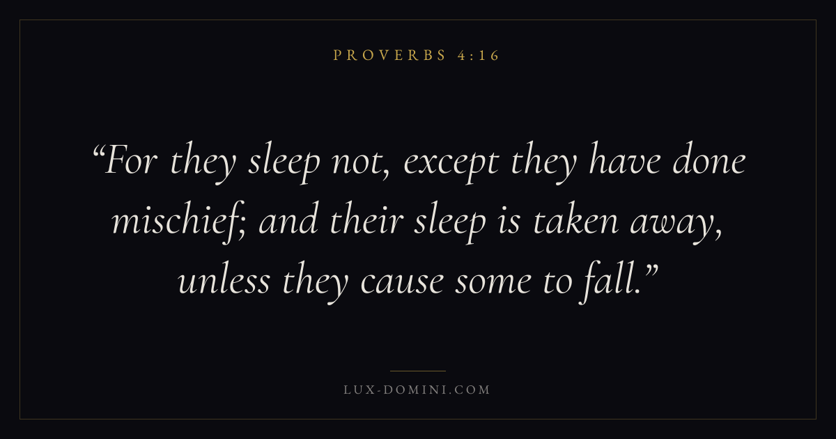 For they sleep not, except they have done mischief; and their sleep is taken away, unless they cause some to fall.