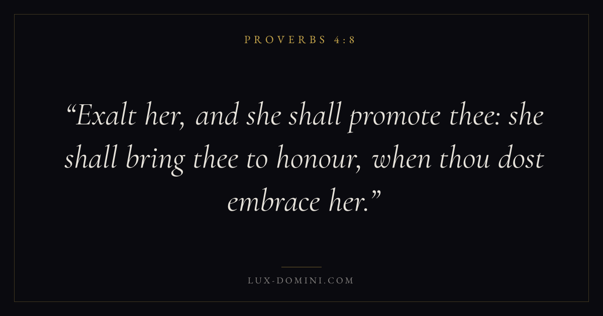 Exalt her, and she shall promote thee: she shall bring thee to honour, when thou dost embrace her.