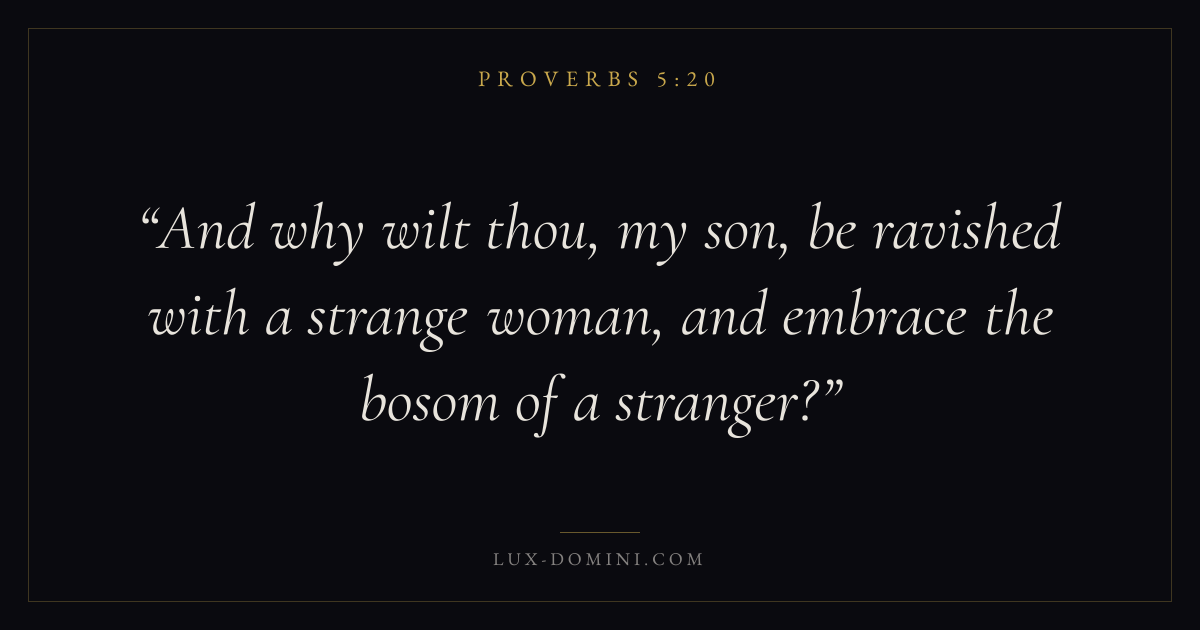 And why wilt thou, my son, be ravished with a strange woman, and embrace the bosom of a stranger?