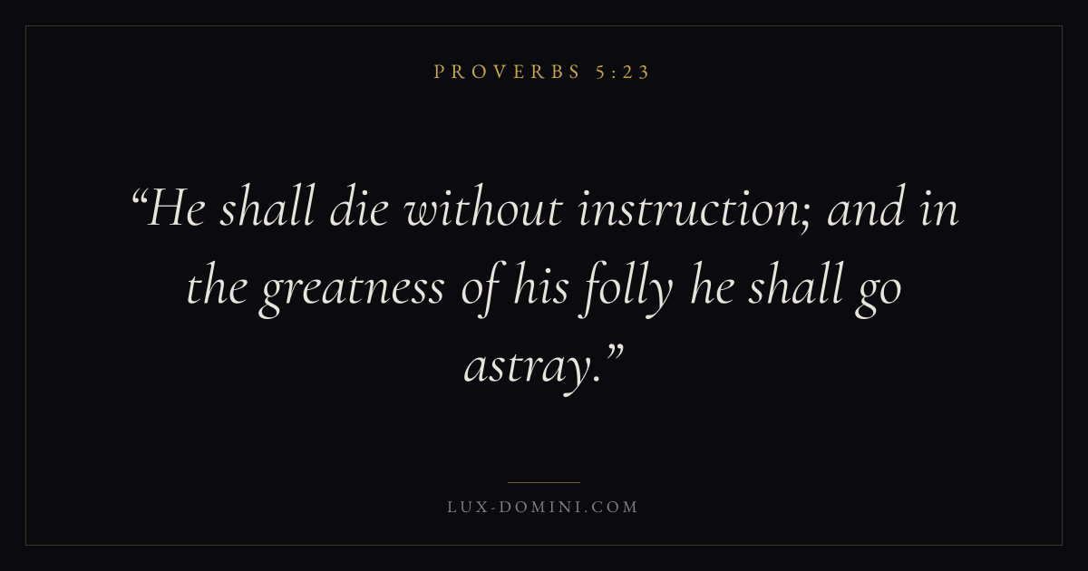 He shall die without instruction; and in the greatness of his folly he shall go astray.