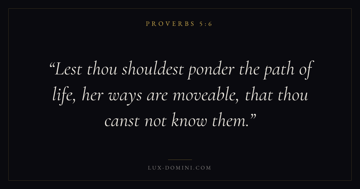 Lest thou shouldest ponder the path of life, her ways are moveable, that thou canst not know them.