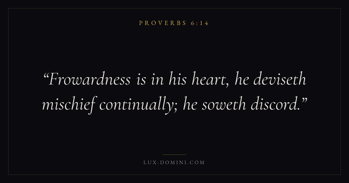 Frowardness is in his heart, he deviseth mischief continually; he soweth discord.