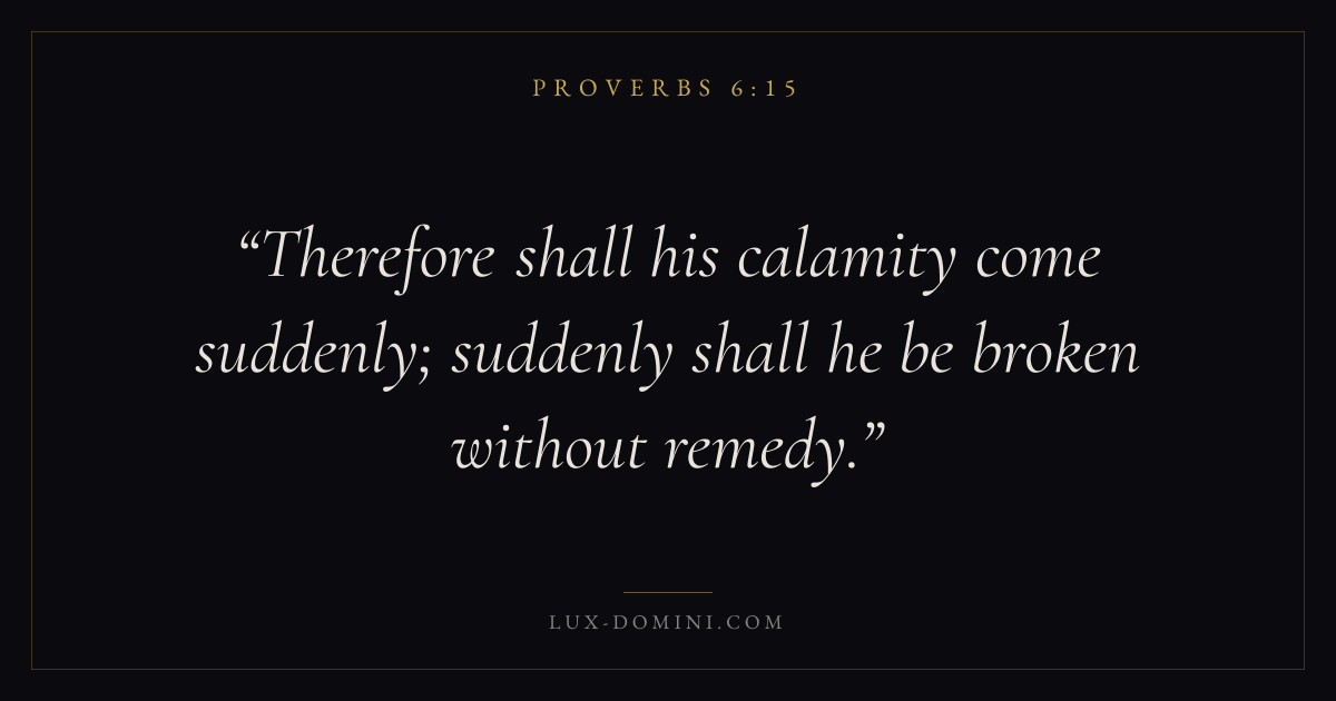 Therefore shall his calamity come suddenly; suddenly shall he be broken without remedy.