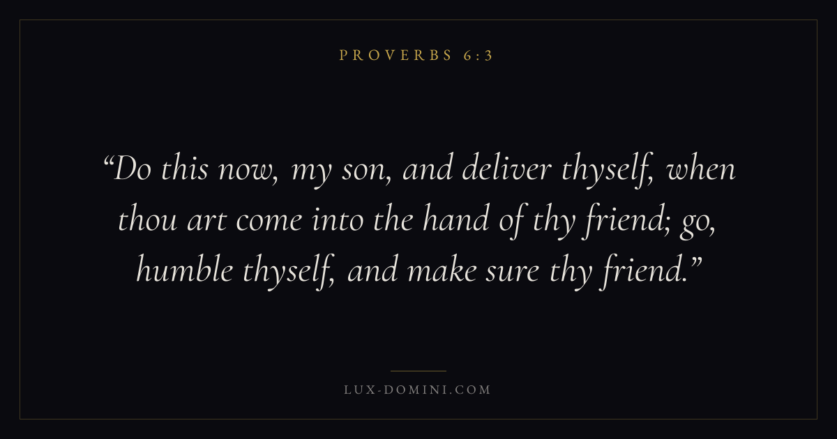 Do this now, my son, and deliver thyself, when thou art come into the hand of thy friend; go, humble thyself, and make sure thy friend.
