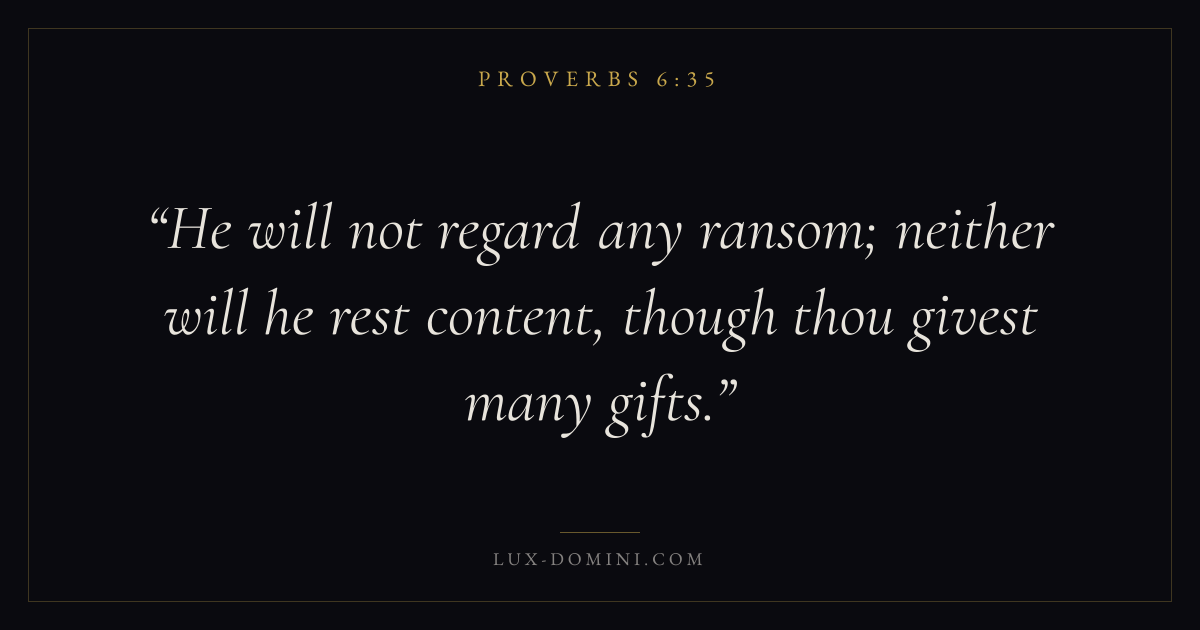 He will not regard any ransom; neither will he rest content, though thou givest many gifts.