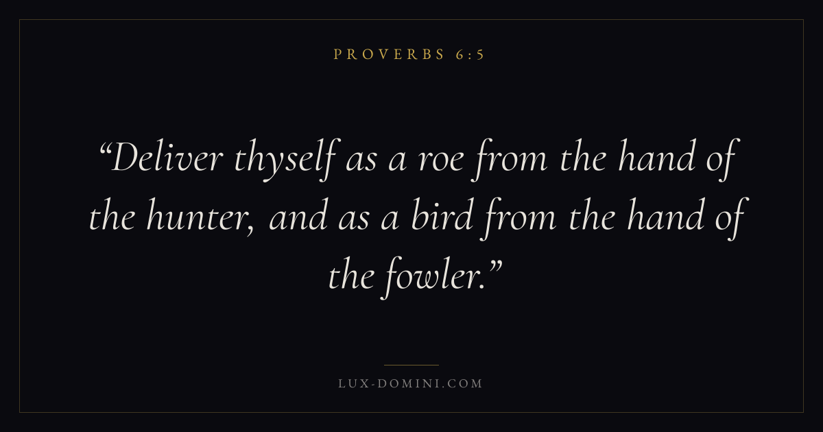 Deliver thyself as a roe from the hand of the hunter, and as a bird from the hand of the fowler.