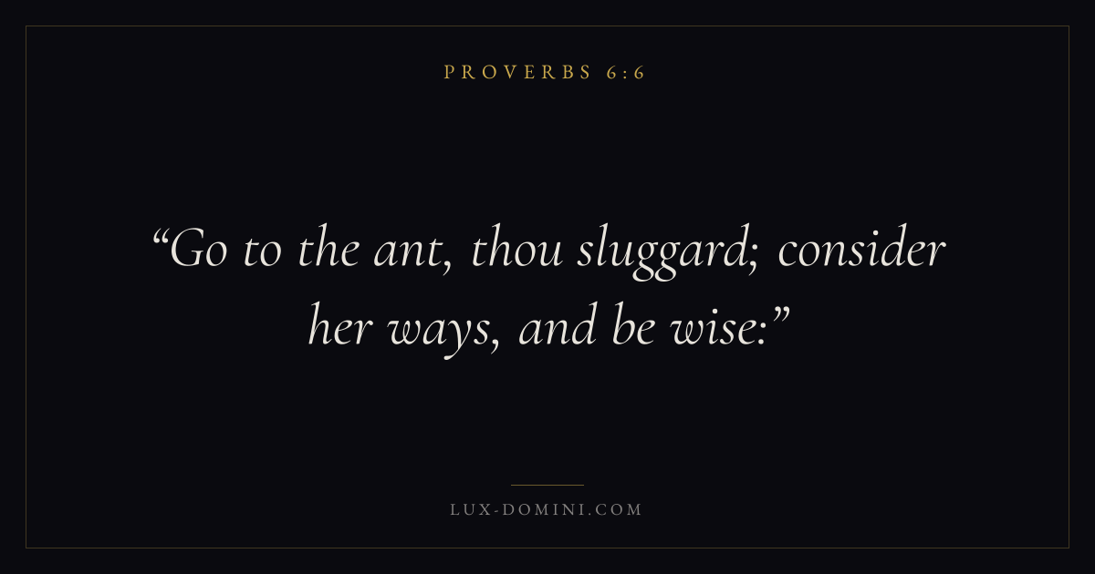 Go to the ant, thou sluggard; consider her ways, and be wise: