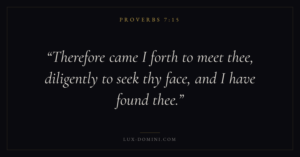 Therefore came I forth to meet thee, diligently to seek thy face, and I have found thee.