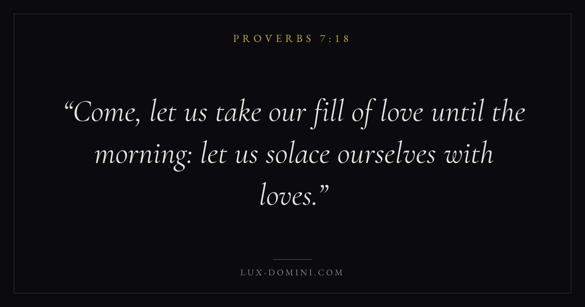 Come, let us take our fill of love until the morning: let us solace ourselves with loves.